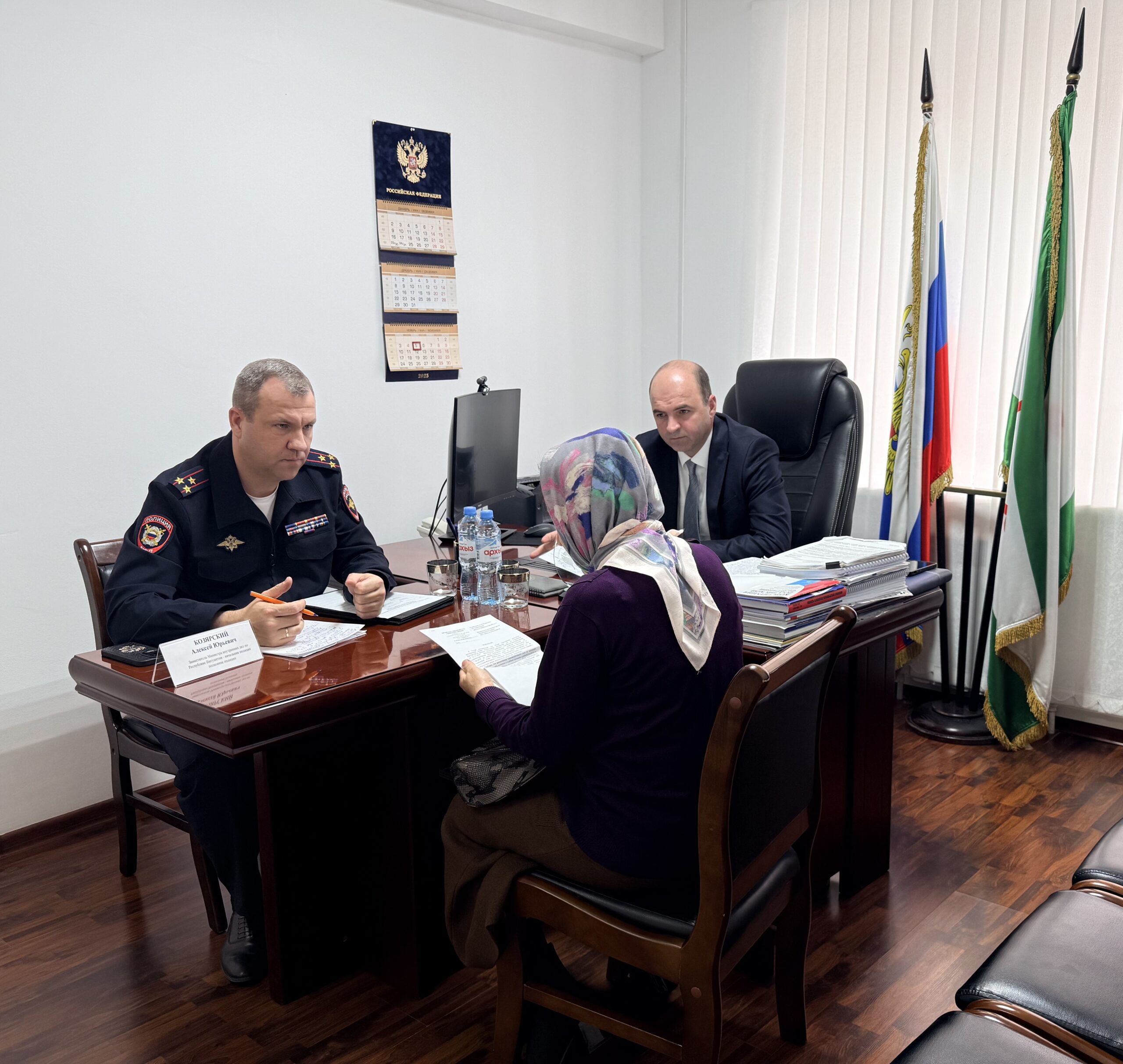 Сегодня, 11 декабря, в Аппарате Уполномоченного по правам человека в Республике Ингушетия состоялся совместный прием граждан, проведенный Уполномоченным по правам человека в республике Ибрагимом Цечоевым и заместителем министра внутренних дел по Республике Ингушетия – начальником полиции Алексеем Козярским.